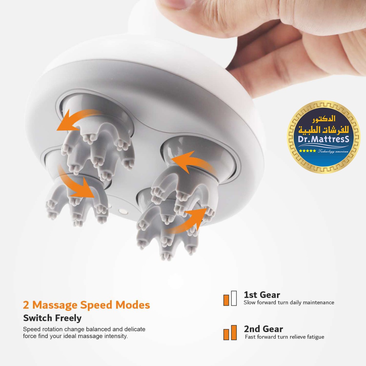 استمتع بتدليك عميق لفروة الرأس مع جهاز بأربعة رؤوس في كل منهم 21نقطة نقطة مساج تقوم بالدورات مع عقارب الساعة وعكس عقارب الساعة