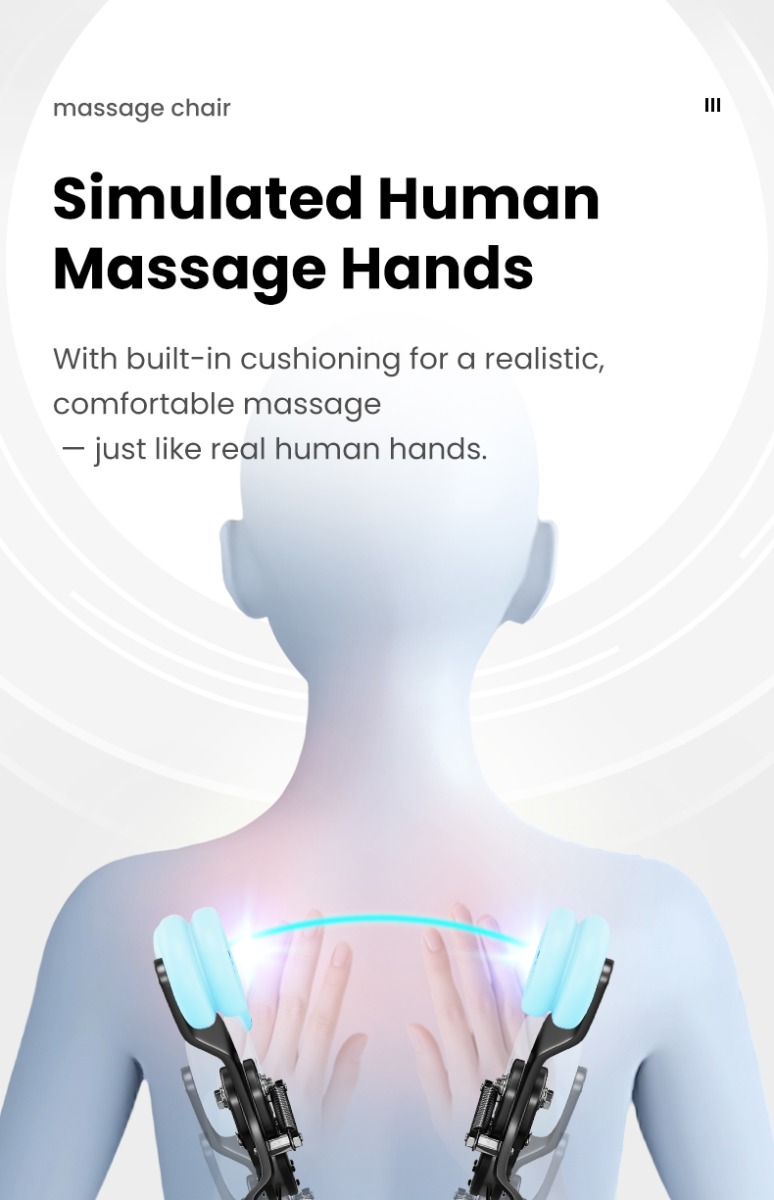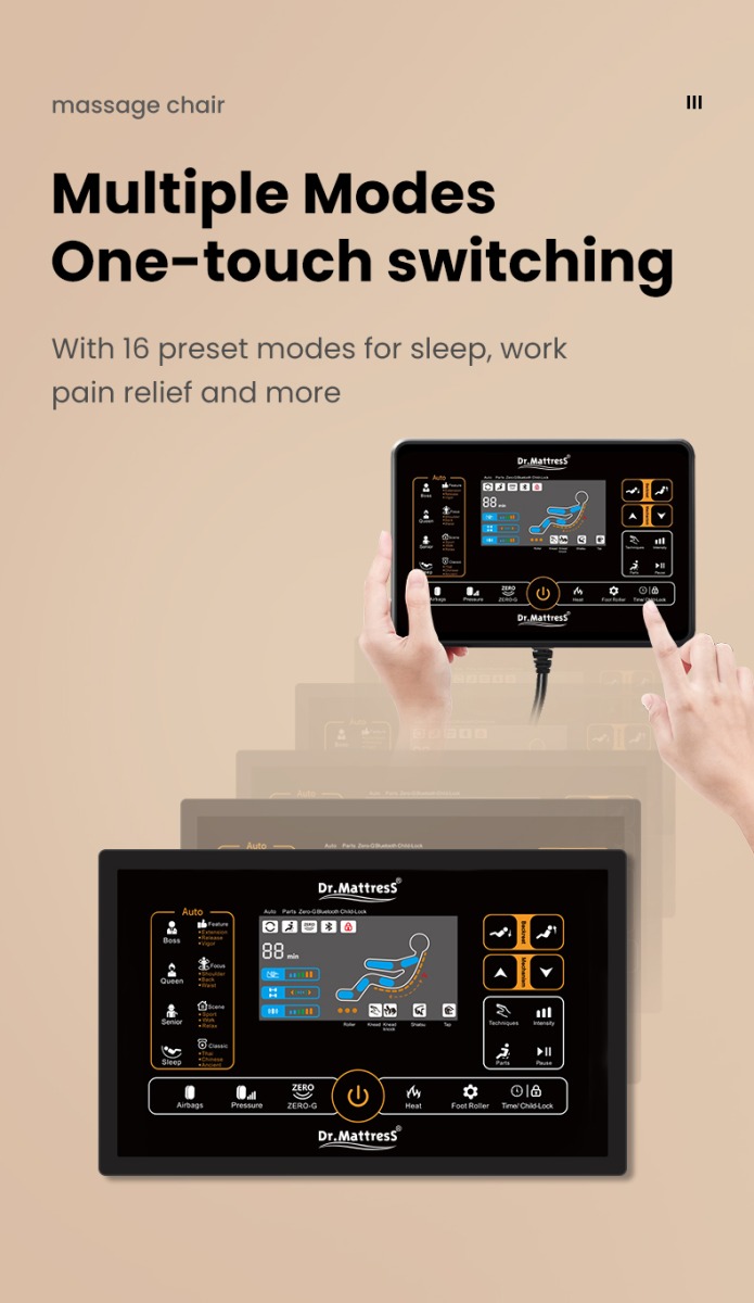 يوفر كرسي الراحة تجرية تدليك فاخرة وعلاجية مصممة لتخفيف التوتر والضغط على الراس الى اسفل القدمين ومع تقنية متقدمة لضمان جلسة مخصصة ومريحة مما يجعله مثالي للاستخدام اليومي المنزلي والروتين الصحي لتعزيز الاسترخاء وتحسين الصحة العامة